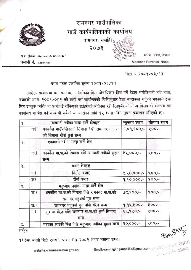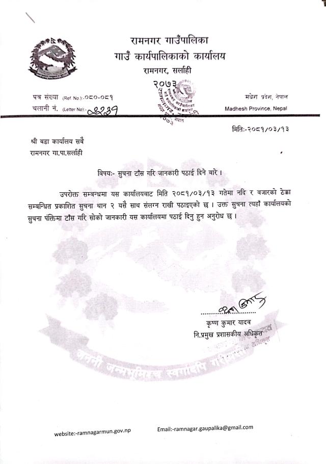 नदि नाला र बजार अत्यन्त जरुरि सुचना